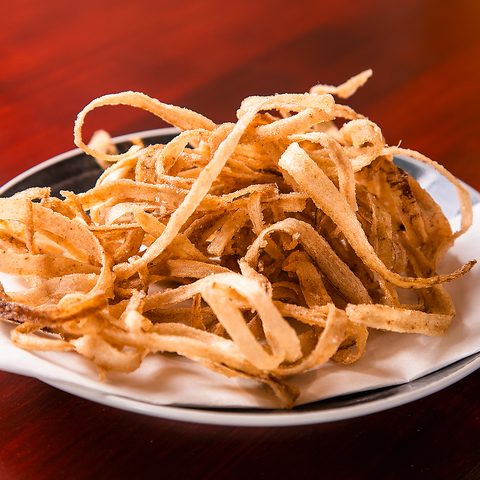 ご来店いただいたら、まずはこちらの『ごぼうチップス』をお召し上がりください!揚げたてが一番おいしい、カリッとした食感がクセになりお酒やドリンクが進むこと間違いなし!お一人様でのさく飲みにも、団体利用の宴会にもピッタリの一品となっています。ぜひご注文ください☆