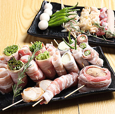 国産の鶏肉を使用した串が自慢!黒豚を使った肉巻きは女性に大人気です海鮮焼きなど多彩なラインナップ。