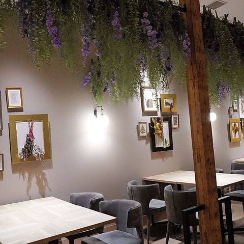 | テーブル | 26名様×8 | 店内は南仏をイメージした華やかでナチュラルな内装。 |