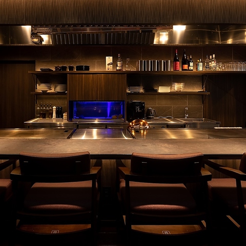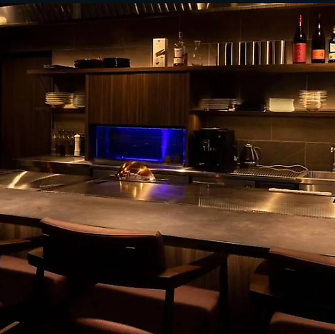 那覇の賑わう国際通りから一歩入った静かな場所に佇むabozは、鉄板焼きとフレンチの融合をコンセプトとした非日常空間です◎オープンキッチンの鉄板カウンター席では、シェフの華麗な調理過程を目の前でご覧いただけます。食材の焼ける音や香りを五感全てで感じられる、ライブ感あふれる特別な時間をお楽しみください♪