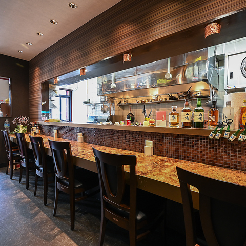【カウンター席 全6席】気軽にご利用できるカウンター席完備!少人数でもご利用出来て、特別な人とのお食事や会話をお楽しみいただけます◎