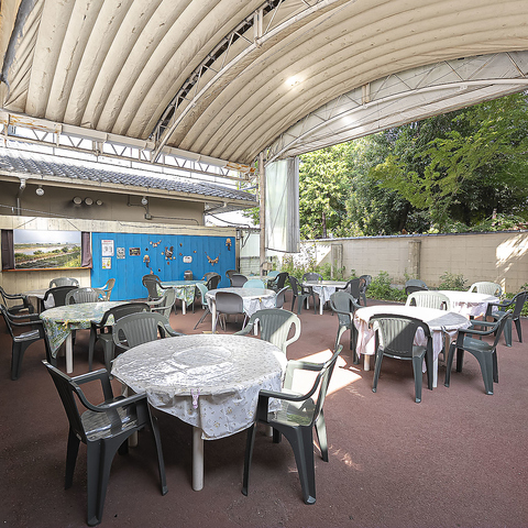 【テラスでの楽しい時間】開放的なテラス席は最大36名様までご利用可能で、屋根があるため天候を気にせずお楽しみいただけます。ワンちゃんも一緒に過ごせるスペースとしてお客様に人気で、BBQ利用も可能です。(事前に店舗にお問い合わせください)心地よい雰囲気の中で、素敵な時間をお過ごしください。