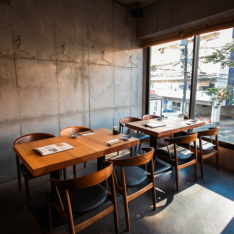 コンクリートうちっぱなしと木の温もりある和モダンな店内でごゆっくりお食事をお楽しみいただけます。