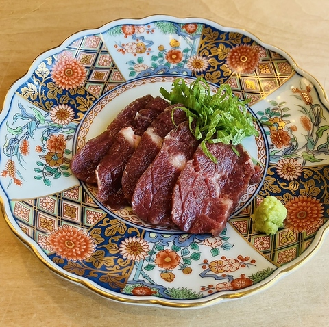 新鮮な桜肉を使用した、柔らかな刺身をご堪能いただけます。独特の風味ととろけるような食感は、お酒のお供としても最高です。厳選した日本酒各種も取り揃えておりますので、是非お試しください◎