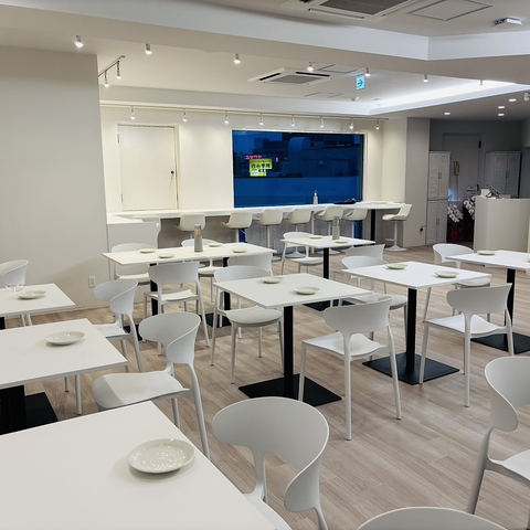 ≪遊び心と清潔感が融合した空間≫10秒ピタッとチャレンジなど、遊び心満載の仕掛けが楽しめる店内は、白を基調とした内装で清潔感溢れる空間となっております♪目の前で調理が楽しめるカウンターキッチンでは、音や香り、仕上がる瞬間まで五感で味わえる臨場感が魅力。席の距離の近さが嬉しい特等席です。