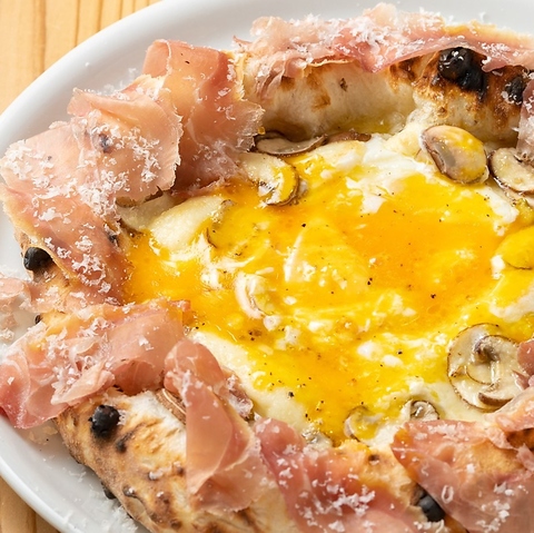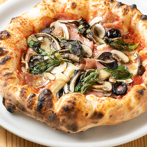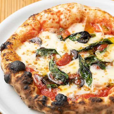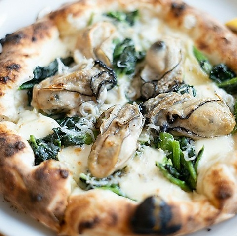 薪窯の強い火力で一気に焼き上げる事で香ばしく仕上げた、松島でも人気の自慢のピッツァです。宮城県産牡蠣を贅沢に使用しており、濃厚で旨み豊かな牡蠣の風味と、まろやかなチーズのコクが生地全体に広がります。一口ごとに海の香りと奥深い味わいを楽しむ事ができる、ワインとの相性も抜群の自慢の一枚です。