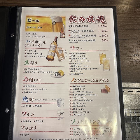 川嶋屋グループ得意の1人1人飲み放題選べます。今回、サワー、ノンアルコールカクテルも充実!