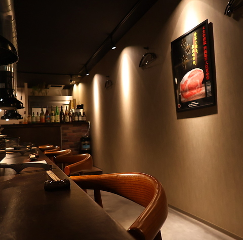 ≪宮崎牛をとことん愉しむカウンター席♪≫全11席ご用意したライブ感あふれるカウンター席は、宮崎牛をより美味しく味わう方法をご提案し、落ち着きながらも楽しい雰囲気を演出する空間づくりを心がけています。おひとり様でのご利用はもちろん、会食や特別なデートやご友人同士でのご飲食にも最適なお席となっております。