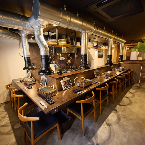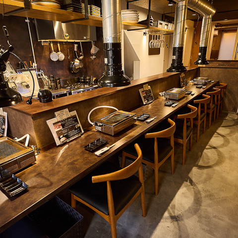 ≪和牛をとことん愉しむカウンター席♪≫全11席ご用意したライブ感あふれるカウンター席は、宮崎牛をより美味しく味わう方法をご提案し、落ち着きながらも楽しい雰囲気を演出する空間づくりを心がけています。おひとり様でのご利用はもちろん、特別なデートやご友人同士でのご飲食にも最適なお席となっております。