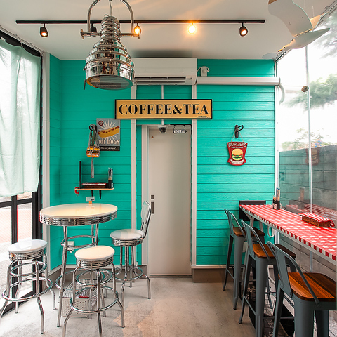 思わず写真を撮りたくなる、おしゃれでユニークな店内!まるで50年代のアメリカにタイムスリップしたかのような、ワクワクする空間が広がります!心地よい音楽と活気あふれる雰囲気に包まれ、心も自然と高揚!特別な時間を心ゆくまでお楽しみください!