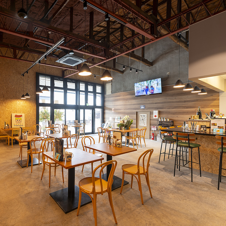 倉庫を改修し、お洒落な写真や絵が飾られた雰囲気抜群の店内!