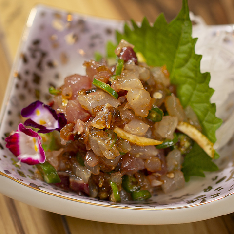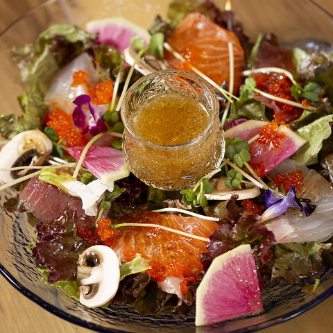 メインは炉端焼きですが、鮮魚のお刺身や野菜を使った冷菜と温菜、新鮮な霜降り牛を贅沢に使用した逸品も数多くご用意しております。お好みに合わせてチョイスしていただけます。食べ合わせに迷ったら、お気軽に一言ご相談ください。お酒とのペアリングもしっかりご提案させていただきます♪