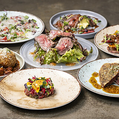 ミシュランシェフ監修の元、A5ランク和牛を含む自慢の品々をたっぷり味わえるコースもご用意。次々とテーブルに運ばれてくる華やかな料理を食べながら、素敵なひとときをお過ごしください。2時間飲み放題付きにも変更出来ますので、ご宴会にも!