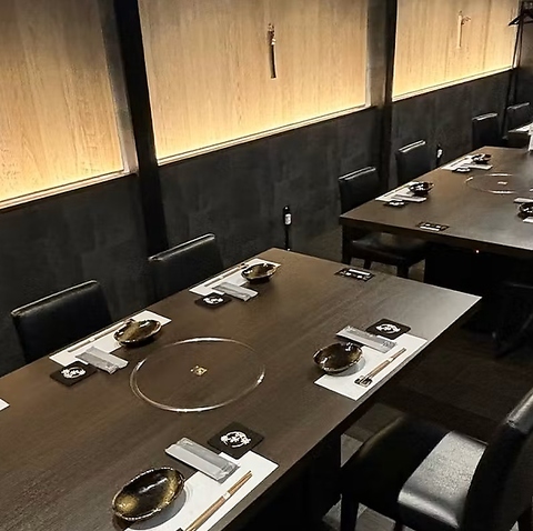 店内は、お客様の特別な瞬間をより一層特別なものにするために、細部までこだわっています。完全個室や半個室を提供することで、プライベートな空間を提供し、大切な人との時間を存分に楽しめます。接待や会食などのビジネスシーンや大切な人との特別な瞬間を邪魔しない、洗練された雰囲気の個室空間でくつろぎのひとときをお愉しみください。