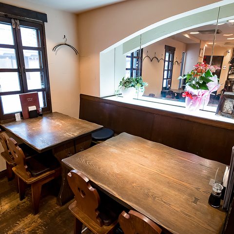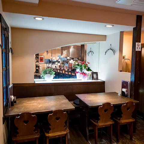 【大切な方とのお食事に】落ち着いた雰囲気のテーブル席。木目を基調とした温かみのあるテーブル席は4名様掛けを3席ご用意しております。2名様からご利用可能です◎大切な人とのデートや女子会、ご家族とのご利用など、様々なシーンでゆったりとお過ごしいただけます。