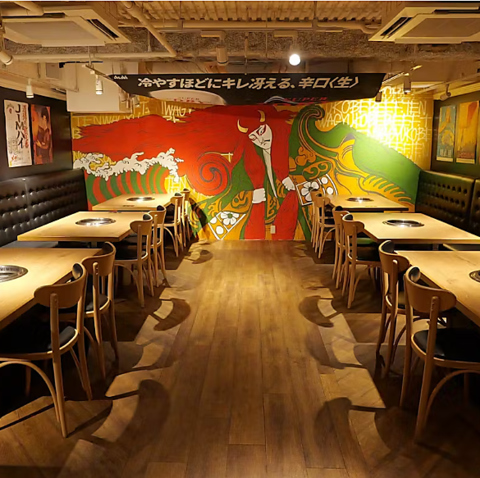 店内は、活気あふれる「大衆感」をコンセプトとした、居心地の良い空間をご提供しております。ご家族やご友人、同僚の方々と、肩肘張らず賑やかに焼肉をお楽しみいただけます。