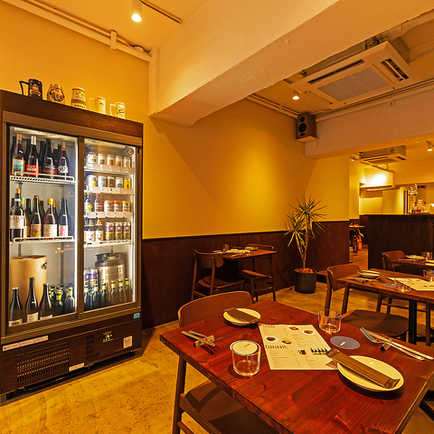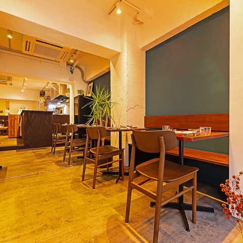 ナチュラルとスタイリッシュを基調にしたインテリアが、昼夜で異なる表情を見せるビストロ。昼は自然光で開放的な雰囲気し、夜はやわらかな光がインテリアを引き立て、テーブルに映えるコントラストが上質な空間を醸し出し、夜の時間に彩りを与えます。各線駅近でアクセス良好★