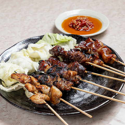 店主が自信を持って焼き上げる串焼き。絶妙な焼き加減で仕上げられた肉は、外は香ばしく、内側はジューシーな食感が広がります。選び抜かれた新鮮な素材を使用しており、どの串も豊かな旨味が感じられます。贅沢なお食事の時間をお過ごしください。