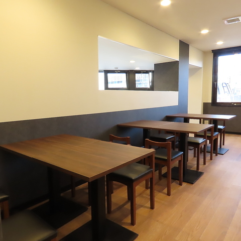 木目調の温かみのあるテーブルと椅子が、落ち着いた雰囲気を醸し出しています!お一人での食事や、友人とのランチ、ご家族での食事など、どんなシーンでもゆったりと過ごせる空間です。心も体も満たされる至福のひとときを!
