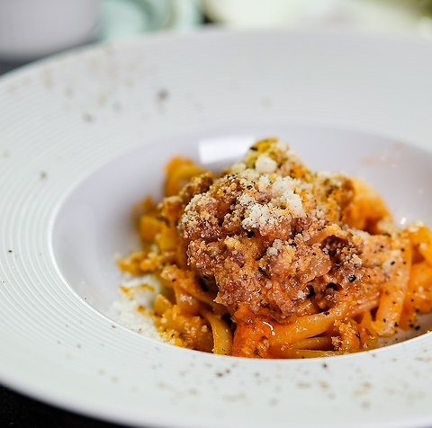 パスタは手打ちのモチモチ感と乾燥麺の良さを引き出し、季節感あふれるソース・香るハーブと立ち上がるオリーブオイル・チーズの香りを届けます。世界各国の厳選ワインとともに至福の時間をお過ごし下さい。