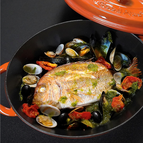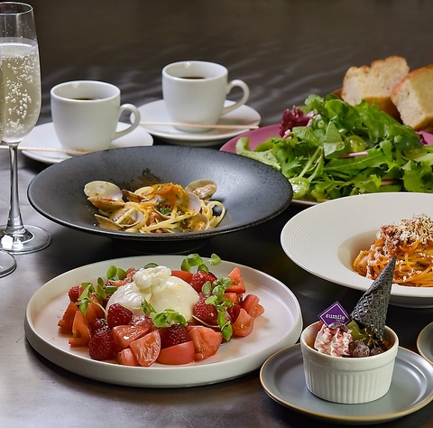 前菜は全国から届く安全で美味しい有機野菜を中心に構成。パスタは手打ちのモチモチ感と季節感あふれ香るハーブと立ち上がるオリーブオイル、チーズの香りを届けます。メインは炭火焼をメインとした調理法で食材の持つ味を最大限に引き出しイタリア料理らしいテイストを追求。デザートは四季折々の創作デザートをご用意致しております。