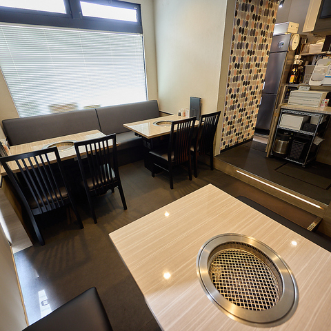 駅から徒歩約3分、落ち着いた雰囲気の当店は、デートやお一人様にも人気の焼肉店です。4名用テーブル3卓とカウンター3席を備え、コンパクトながら居心地の良い空間。無煙ロースターを使用しているため、煙や臭いを気にせず、ゆっくりと本格焼肉と韓国料理を楽しめます。