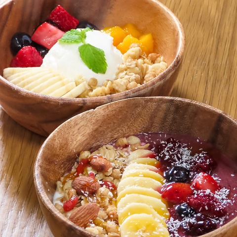 トッピング(マンゴー、ナッツ、パイン、アロエ、ミックスベリー、バナナ、チアシード+ナノプロテイン)+100円※ココナッツは無料!