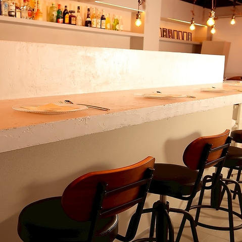 カウンター越しに並ぶ、種類豊富なボトルがインテリアとしてもお洒落な空間です。落ち着いた照明とバーらしい空間で、並んだお酒を眺めながら、お互いの好きな銘柄について会話を弾ませるのも楽しいひとときです。大人のデートや友人とじっくり話したい時など、落ち着いて過ごしたい夜におすすめ
