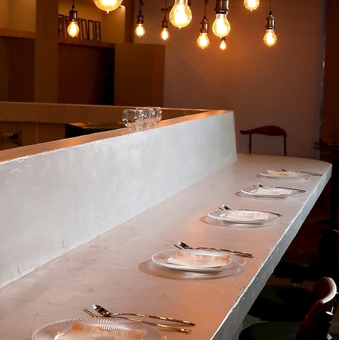内装はシンプルながらも洗練されており、落ち着いた大人のお客様が心ゆくまで寛げるよう細部にまでこだわっています。温かみのある裸電球が優しく灯り、店内を包み込む柔らかな光が、ゆったりとした贅沢なひとときを演出。日常を忘れてリラックスできる、居心地の良い空間です。気分に合わせて上質な時間をお過ごしいただけます。