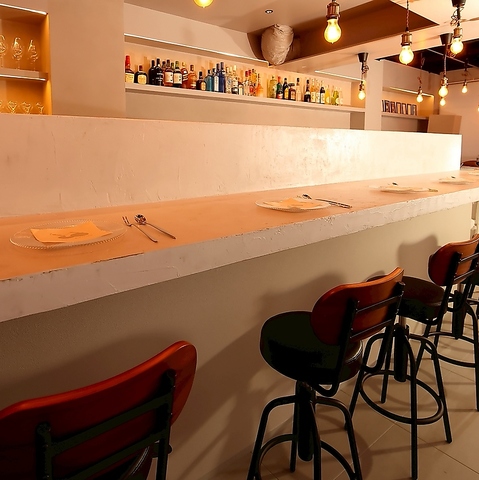 内装はシンプルながらも洗練されており、落ち着いた大人のお客様が心ゆくまで寛げるよう細部にまでこだわっています。温かみのある裸電球が優しく灯り、店内を包み込む柔らかな光が、ゆったりとした贅沢なひとときを演出。日常を忘れてリラックスできる、居心地の良い空間です。気分に合わせて上質な時間をお過ごしいただけます。