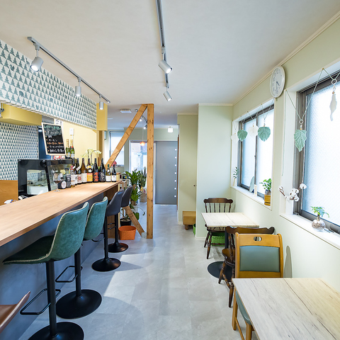 【遊び心あふれる内装で元気になれる】壁や窓にはかわいらしいオーナメントやデコレーションが♪心が穏やかになる色使いのインテリアで明るく開放的な雰囲気です。お客様を元気にしたいという想いで造られたお店です。