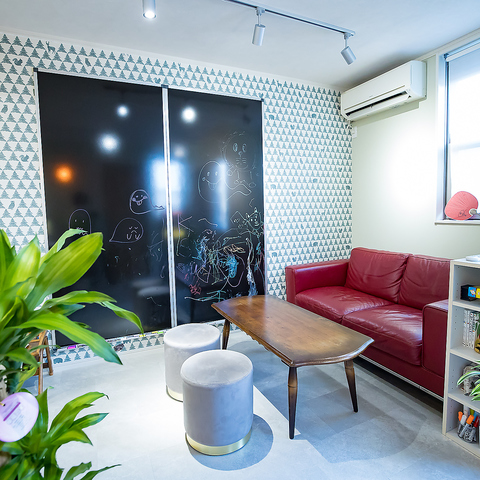 【ゆったりくつろげるお子様連れも大歓迎のソファ席】店内奥には、ソファ席をご用意しています。壁にある黒板は落書きチャージ!子供はもちろん、大人も童心に帰って落書きを楽しめる楽しい空間になっています!