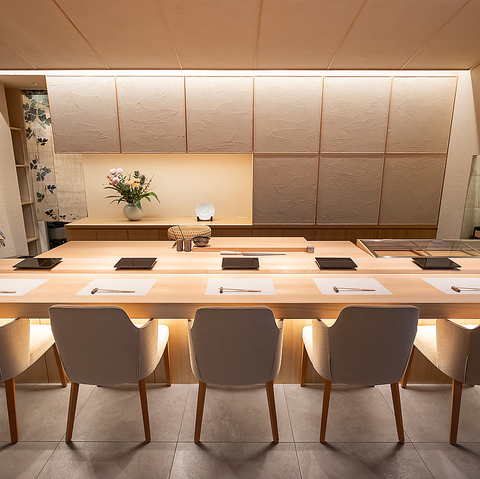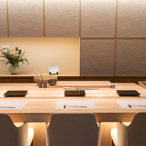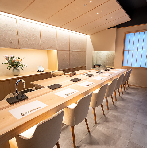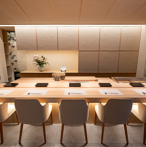 最大7名様までご利用可能。鮨を握る職人の可憐な手さばきを目の前でご覧いただけるカウンター席。接待や特別な日の食事会にもどうぞ。