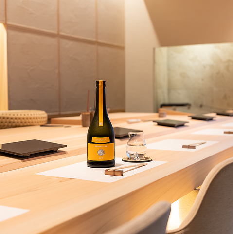 当店では、鮨や料理に合わせ厳選した日本酒を5~10種類の銘柄を用意しており、鮨の味わいを最大限に引き立てるものばかり。季節限定品や珍しい銘柄もあり、陶器やガラスのお猪口から選ぶ楽しみも味わえます。特別な食体験を心ゆくまでお楽しみください。
