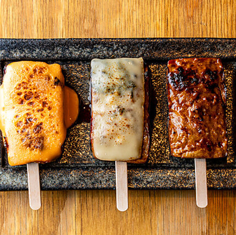 タレ380円(税込)/卵黄ソース480円(税込)/チーズ480円(税込)