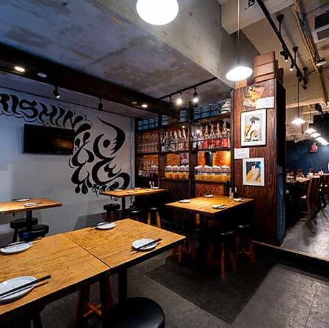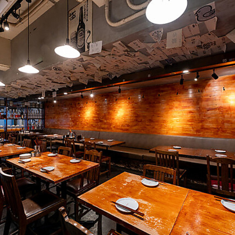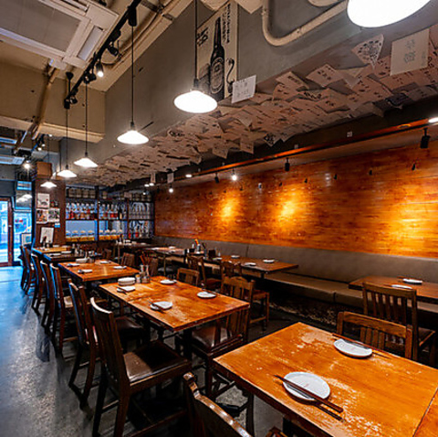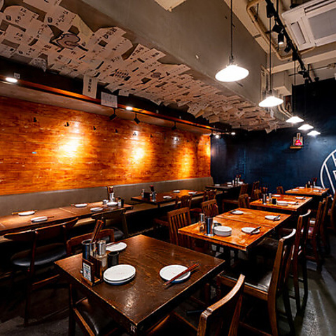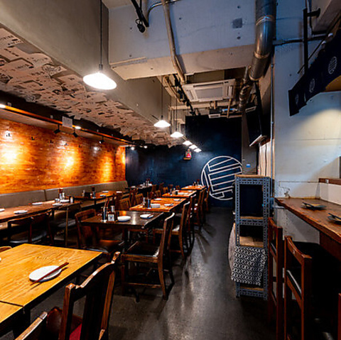おしゃれでありながらどこか懐かしさを感じさせる、「大正モダン×インダストリアル」をテーマにした店内。温かみのある照明と木を基調とした内装が、心地よい空間を演出します。まるで隠れ家のような雰囲気で、ゆっくりと食事を楽しみたい方におすすめです。落ち着いた空間で、素敵な時間をお過ごしください。