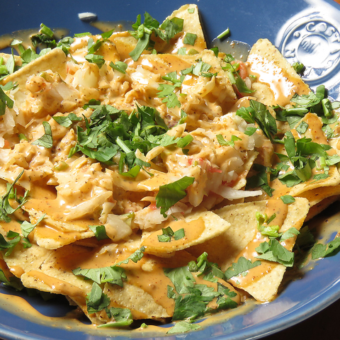 香ばしく焼き上げたトルティーヤチップに、特性サルサをたっぷりトッピング♪