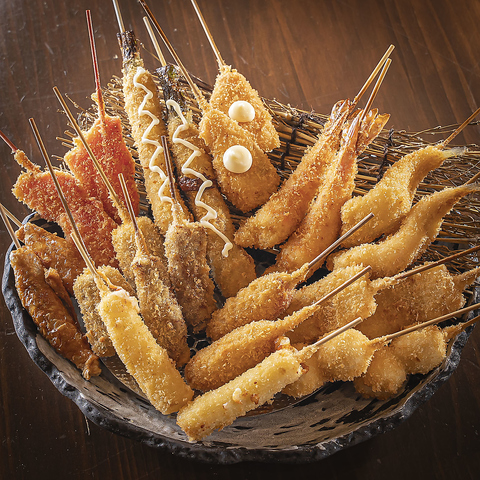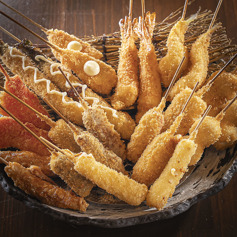 特製の油とパン粉で丁寧に揚げた串カツが自慢!軽くてサクッとした食感と、旨味が口いっぱいに広がります。