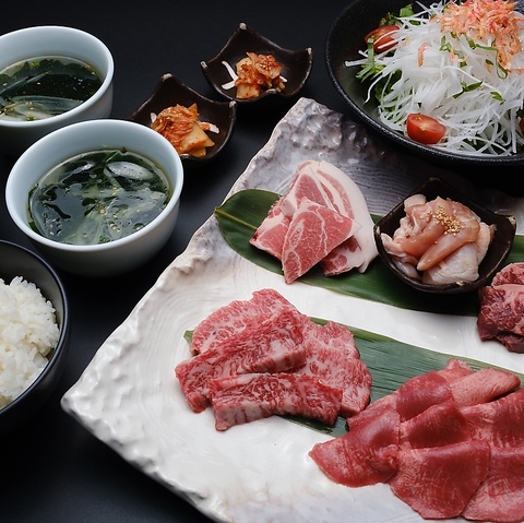 牛タン、和牛カルビ、とんとろ、鶏もも、ハラミといった肉の盛り合わせに、サラダ・キムチ・ライス・スープまで付いたお得なファミリーセット!ご家族連れはもちろん、仲間との集まりや記念日にもぴったり。ボリューム十分で満足感高く、みんなで楽しめる定番メニューです♪