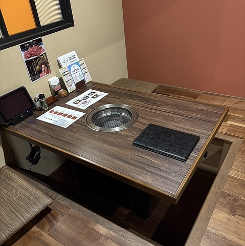 お子様連れのお客様にも優しい掘りごたつ席を完備。靴を脱いでリラックスできるので、小さなお子さんのいるご家族や長時間の宴会にもぴったり。さまざまなシーン、気分に合わせてくつろげる空間を提供しています!