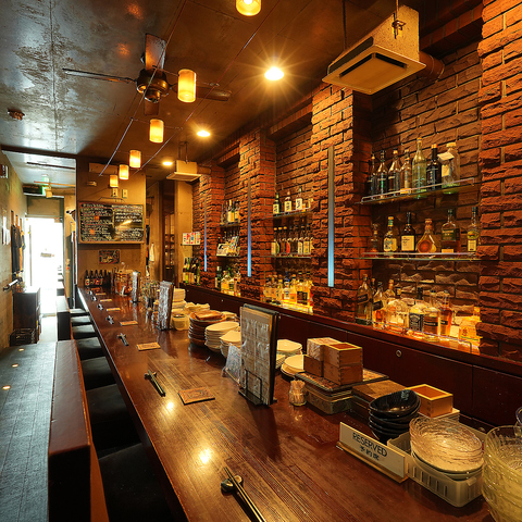 【大人の雰囲気を楽しめるカウンター席】当店のカウンター席は赤レンガ調のデザインで、大人の雰囲気が漂います。全8卓をご用意しており、お一人様でも、友人や大切な方と一緒でも気軽にご利用いただけます♪本格的なバーカウンターでお刺身や燻製料理と自社醸造のビールをお楽しみください!