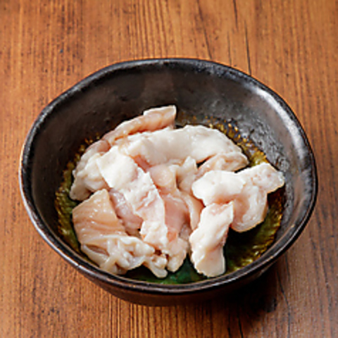 - (1)一般的に食肉の生食は食中毒のリスクがございます。(2)お子様、高齢者の方、その他食中毒に対する抵抗力の弱い方は生食をお控えください。/お通し418円(税込)