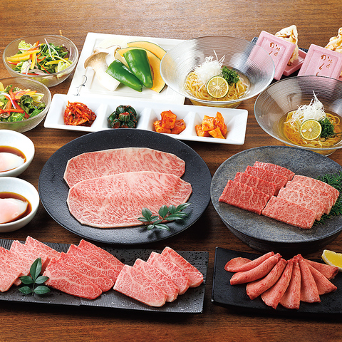 当店の人気メニューをギュッと詰め込んだ、おすすめのコースです◎佐賀牛の希少部位やカルビ、茶美豚、みつせ鶏など、選りすぐりのお肉をバランス良くお召し上がりいただけます!ご飯物も白飯・石焼ビビンバ・和風冷麺からお選びいただけます!