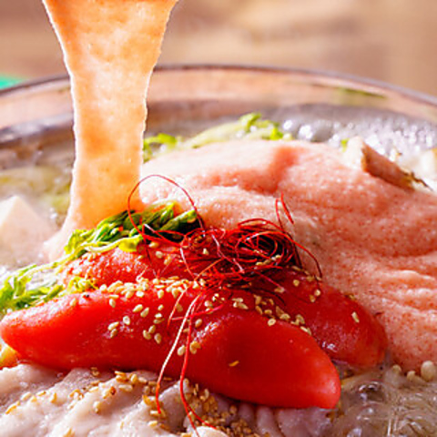 ふくやの明太子をたっぷり使った「名物!明太トロロ鍋」は、昆布出汁の旨味が詰まったこだわりの鍋◎当店スタッフが掛け声とともに明太トロロをかけるため、エンタメ要素も魅力です♪鍋の〆には、チーズリゾット・雑炊・うどんをご用意しております!
