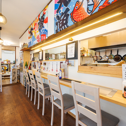 入店して右手に広がるカウンターは全6席。厨房の活気や調理の音を間近に感じられる特等席です