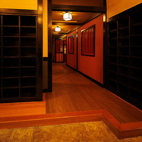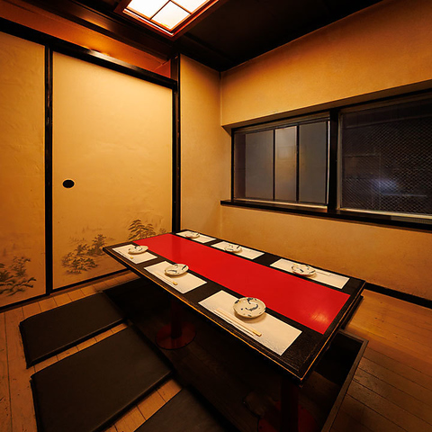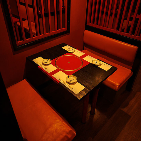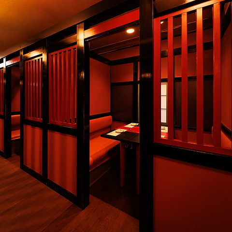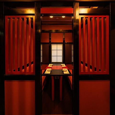 赤を基調とした落ち着いた雰囲気の半個室!肩肘張らずにゆったりと過ごせる空間は、デートや記念日、親しい方との特別な夜にもピッタリ!和の風情に浸りながら贅沢なひとときをお過ごください!