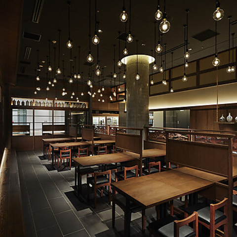 モダンで落ち着いた雰囲気の店内は、ゆったりとくつろげる空間が広がっています◎お席も広々としており、ご家族やご友人とのお食事、各種ご宴会など様々なシーンにご利用いただけます。美味しい料理を囲んで、大切な人との思い出に残るひとときをお過ごしください。
