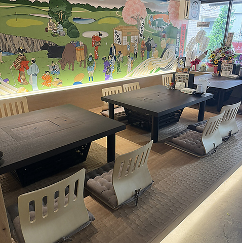 【お座敷席で楽しむ、くつろぎの時間】足元ゆったりのお座敷席で、リラックスしながら美味しいお食事を。香ばしく焼き上げた新鮮なホルモンや、もちもち食感がクセになる自家製うどんなど、素材にこだわった絶品メニューをご用意しています。焼肉と相性抜群の逸品を囲んで、特別なひとときをお楽しみください。