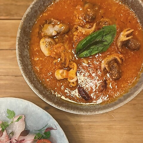 プリップリのイイダコと煮込みまくったトマトソースがベストマッチ! 残ったソースはバケットと一緒にどうぞ♪
