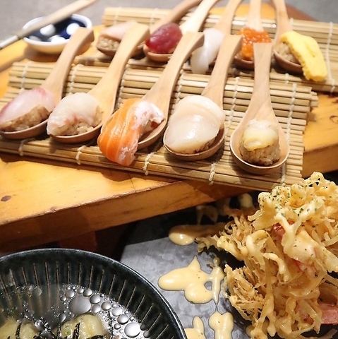 お酒に合うおつまみも豊富にご用意!れんげ寿司と豊富なドリンクで大人の時間を演出。